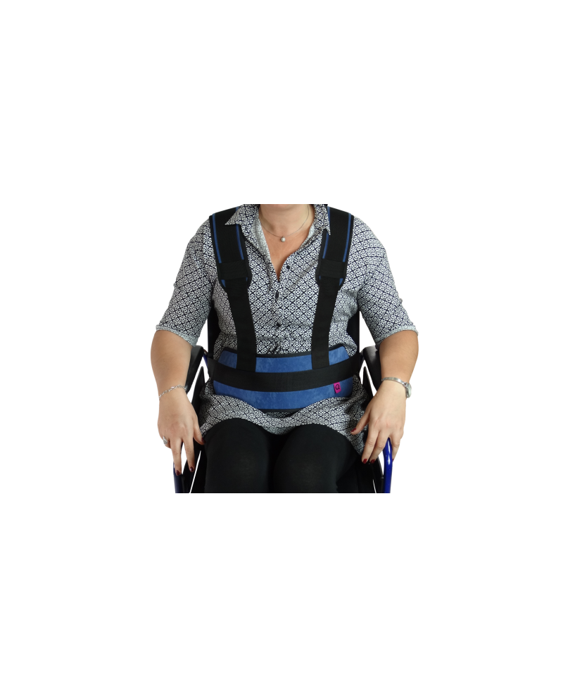 El cinturón abdominal con tirantes para silla o sillón ofrece soluciones a problemas de inestabilidad causados por disminuciones funcionales físicas o psicológicas. Evita que el paciente se incline, se deslice o sufra mala postura. Ofrece una sujeción firme y cómoda en el área abdominal con cierre de seguridad en la parte posterior para evitar que el paciente lo abra por sí mismo.