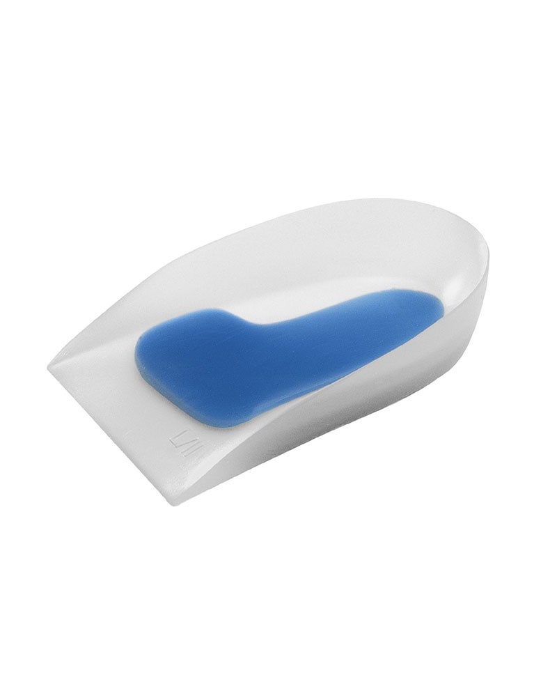 Talonera fabricada en silicona que, por sus propiedades viscoelásticas, amortigua los puntos de carga tanto durante la marcha como en posición estática. Posee una zona asimétrica de consistencia más blanda en el talón (zona azul). Base con forma anatómica y mayor anchura en la parte delantera que favorece el reparto de las cargas entre retropie y mediopie, el control del calcáneo, y mejora la estabilidad.