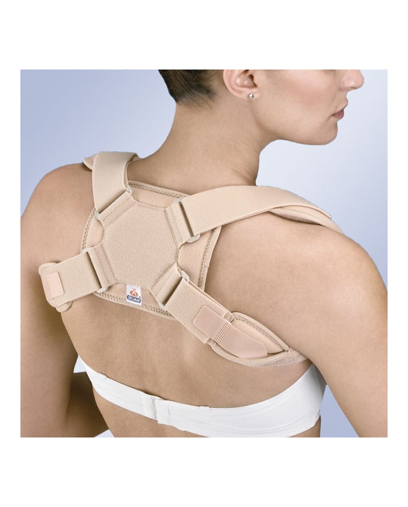 El nuevo modelo de inmovilizador de clavícula comprende una almohadilla acromio clavicular diseñada específicamente para ejercer una amplia y cómoda presión en el acromio y la cabeza del húmero sobre la zona delto-pectoral, repartiendo de esta manera la presión sobre la articulación con mayor confort, obteniendo una retropulsión de hombros tolerable.