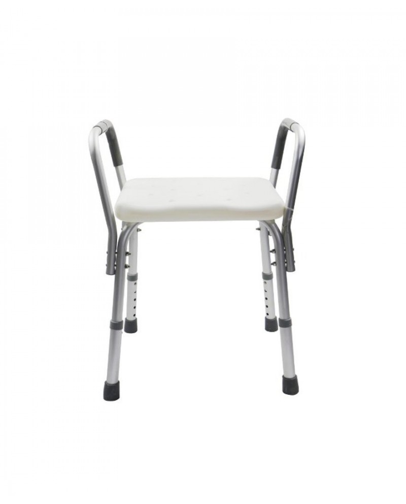 Esta silla de baño con brazos es un producto de apoyo para el aseo. Sus reposabrazos acolchados ayudan al agarre e incorporación.